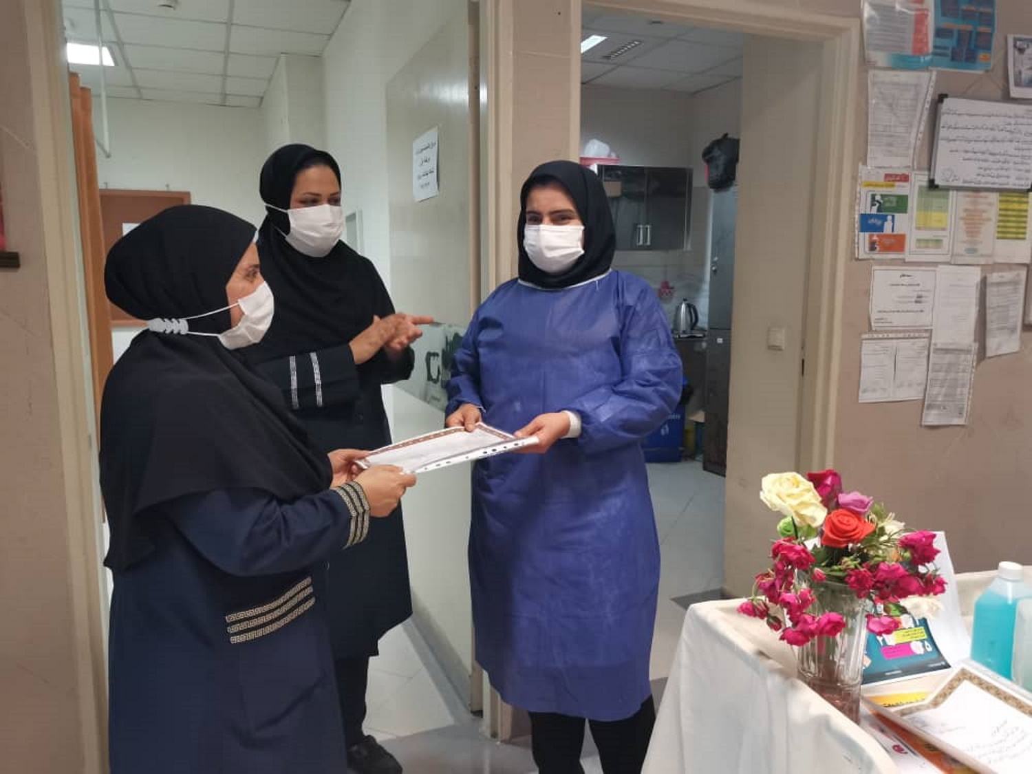 همچنین رابطین کنترل عفونت با عملکرد برتر مورد تشویق قرار گرفتند.در ادامه به افراد حاضر در درمانگاه که روش صحیح شستن دست را اجرا کردند، مایع الکلی بهداشت دست تقدیم شد.